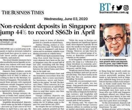-根據(jù)新加坡金融管理局的數(shù)據(jù),今年4月新加坡本地銀行的外幣存款比去年同期增長(zhǎng)近兩倍,達(dá)到創(chuàng)紀(jì)錄的270億新元,而非居民存款飆升44%,達(dá)到620億新元,達(dá)到1991年有記錄以來的最高水平。